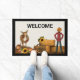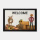 Autumn Welcome Custom Door Mat with Deer, Scarecrow, hay, sunflowers and pumpkins.