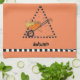 From the 4 Season Collection, the "Autumn" towel features a wheelbarrow filled with pumpkins and fallen leaves.Design sits inside a triangle. Seasonal colours with a black and white chequered border stripe. Background colour can be customised.