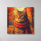 Bring autumn charm to your walls with ‘Autumn Whiskers’—a cosy cat in a scarf surrounded by fall leaves, canvas print décor.