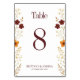 Autumn Wildflower Elegant Boho Wedding Table Number