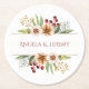 Autumn Wildflower Watercolor Wedding Red Round Paper Coaster