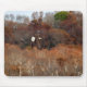 A glorious bald eagle banks into a dive showing its full wingspread. Autumn colour completes the scene.