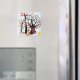 This image is designed as an autumn day with the snow coming down. The trees are losing their leaves and the turkeys are sitting on their vegetable and fruits. These magnets come in a variety of styles and sizes. Great to use them in your kitchen or classroom.