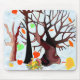This image is designed as an autumn day with the snow coming down. The trees are losing their leaves and the turkeys are sitting on their vegetables and fruits. Snow is blanketing the entire sky. This mouse pad comes available in a gel pad also. Makes a great gift.