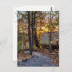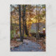 Postcard featuring a sunset photo through the woods taken from Silver Dollar City in Branson Missouri during the late autumn season.