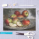 This sumptuous still life celebrates the timeless beauty of harvest apples, masterfully rendered with a chiaroscuro technique that recalls the Dutch Golden Age. The composition artfully arranges crimson and chartreuse apples in antique silverware, where ornately carved serving pieces provide a sophisticated counterpoint to the fruit's natural form. Fresh-cut apple segments reveal pristine flesh, adding an intimate dimension to the scene while highlighting the fruit's inner beauty.