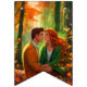 Amidst the golden hues of an autumn forest, two lovers sit close, their eyes locked in a tender moment. The soft sunlight filters through the leaves, casting a warm glow that envelops them in an atmosphere of romance and tranquillity. Their gentle expressions and the rich, vibrant colours of the scene capture the beauty of love in a fleeting season.