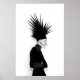 Command attention with this striking black and white art print, a masterful display of avant-garde fashion and artistic minimalism. This captivating portrait features a mysterious figure in profile, adorned with an incredibly dramatic, spiky black headpiece that reaches skyward, creating an unforgettable silhouette. Her look is further enhanced by an intricate, multi-layered black choker, gleaming patent leather-like gloves, and a bold statement earring, all contributing to an aura of sophisticated allure. Set against a pristine white background with subtle shadow play, the high-contrast composition emphasizes the bold forms and textures, making this print a powerful statement piece. Perfect for contemporary interiors, this artwork will add a touch of dark elegance, high fashion, and enigmatic beauty to your living room, bedroom, office, or creative space, appealing to art enthusiasts and fashion connoisseurs alike.