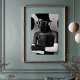 Make a dramatic statement with this striking black and white art print, a true masterpiece of avant-garde fashion and artistic expression. The central figure commands attention with their distinctive spiky hairstyle, iconic round white sunglasses, and a sleek black corset adorned with prominent metal grommets. A bold contrast is created with one arm cloaked in a black glove and the other in a voluminous white sleeve, showcasing a masterful play on texture and silhouette. Framed by two shadowy, minimalist figures against a clean grey backdrop, this piece exudes an air of mystery and sophisticated coolness. Rendered in high-contrast monochrome, every detail, from the subject's unique styling to the subtle textures of the garments, is highlighted with graphic precision. Perfect for modern living spaces, fashion studios, or any decor seeking a touch of edgy elegance, unique style, and a powerful visual narrative.