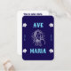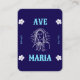 This two-sided prayer card features the Ave Maria design on the front and the beloved Dios te salve, María prayer in Spanish on the back. The illustration of the Virgin Mary is framed by soft floral details on a deep blue background, evoking peace and devotion.