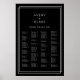 This seating chart template from the Avery Suite features a dark black background, a slim white double frame, and clean sans serif type. It creates a modern, polished look suited to city venues, galleries, and evening weddings.