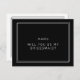 This will you be my bridesmaid card from the Avery Suite features a dark black background, a slim white double frame, and clean sans serif type. It creates a modern, polished look suited to city venues, galleries, and evening weddings.