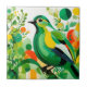 Avian Elegance, Green Abstract Bird On Tree Branch Tile