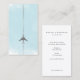 Minimalist aviation business card with aeroplane vector image and blue watercolor background.