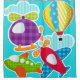 Colourful and fun kids shower curtain that's perfect for the little pilot who loves planes and flying, features a blue sky with clouds, two aeroplanes, a helicopter, and a hot air balloon!