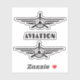 Aviation icon retro style with a geometric illustration of a plane and the word Aviation in a vintage font. Two aeroplane stickers on one sheet.