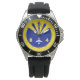 The perfect watch for the aviator or aviation enthusiast! Unique Edition watch design featuring an aeroplane flight instrument design in bright yellow and blue.