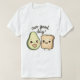 An avocado and toast dance together, grinning with wonky hand-drawn features. Imperfect art adds to that friendly vibe.