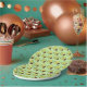 Paper plates with a pattern of smiling avocado and avocado pit cartoon characters.