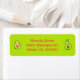 An adoring loveable design, this avocado inspired address label features a green background with pink text. There is a cute avocado graphics portraying a girl and boy. Use the templates to personalise.