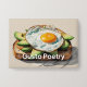 This button features a charcoal illustration of a slice of rustic bread topped with avocado slices and a fried egg, drawn with soft strokes that reveal comforting and authentic textures. Incorporated is the Gusto Poetry logo with the tagline A Culinary Odyssey, which elegantly completes the composition with identity. Ideal for adding an artistic — and appetising — touch to backpacks, jackets, or aprons.