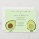 A wedding invitation with a touch of fun. Be represented by two happy avocado illustrations, who are deeply in love. This invitation mixes a whimsical joy with enough elegance that you can design your wedding however you like. The invite is done in a shades of green. Place your names and information on this invitation, add it to your cart, and have a wonderful wedding.
