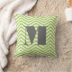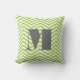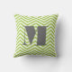Avocado Green Ivory and Grey Modern Monogram Zig Zag Pattern Throw Pillow