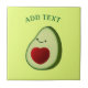 Cartoon style avocado with red heart. Custom decorative ceramic tiles. Edit text to customise. Gift idea for avocado lovers.