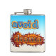 Well made flask, a little better than I had expected. Flask came in clear plastic box which gave it a nice presentation when I took it out of the zazzle packaging. Image is not printed on flask but on sticker. Don't know how this will hold up I haven't used it yet. This would make a Great gift! I plan to purchase more for friends! Cheers. I thought a little brighter than computer. Very crisp, writing wasn't