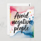 AI generated art of a colourful abstract watercolor with the words Avoid Negative People in a black