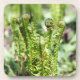 Awakening young fern in the garden coaster