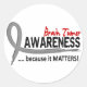 Make a difference in the fight against Brain Tumour by delivering the important message of awareness to everyone around you with Brain Tumour Awareness Because It Matters t-shirts, apparel, buttons, and gifts featuring a simple design, contrasting text fonts, and a striking grey Brain Tumour awareness ribbon ‘underlining’ the word AWARENESS.