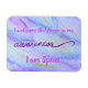 The refrigerator magnet features the white or violet crown centre chakra colour "awareness". The statements above and below note, "I welcome the divine in me. I am Spirit." These statements can be customised with your own personal awareness messages. The art background is from "Let Love Angel".