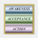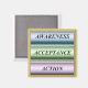 Magnet with words Awareness Acceptance Action on 3d shaped horizontal images. surrounded by gold coloured frame. You can customise it by adding your own text