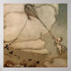 Arthur Rackham was one of the leading illustrators from the 'Golden Age' of book illustration. HIs fantasy illustrations were chiefly based on strong pen and India ink drawings paired with subtle use of watercolor. This image depicts a baby floating away on the tail of a kite from Peter in Kensington Gardens.