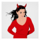 GIRL DRESSED IN DEVIL COSTUME FOR HALLOWEEN, COMPLETE WITH DEVIL HORNS