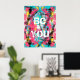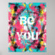 Awesome abstract paint “Be You” words, splatters, brush strokes, arrows, triangles, watercolors, vibrant, bright neon colours, hot pink, vivid blue, bright yellow, orange, black, white colours, graffiti, trendy, artwork, custom, tribal, decorative, modern, fashion, creative, unique, fresh, beautiful, art, popular, cool, design, geometric image. Personalise your name or favourite words, or delete the words for image only, image print.