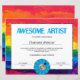 Awesome Artist Certificate of Achievement PDF