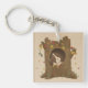 A cute illustration of a beagle in a hollow tree covered in colorful leaves