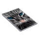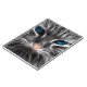 Neon look to the white hair making this feline look like it has grey fur. Piercing blue eyes and a pink nose complete this beautiful sly kitty cat image.