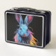 Awesome Blue Rabbit on Fire Metal Lunch Box