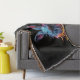 A quality printed throw has its advantages. This is a much finer weave throw than its loopier cousins, and though lighter, it is worth the investment for custom room accessorizing. The back is much prettier than the typical brown, and the fringe on the long sides very vivid, the selvage nicely done. Before photographing, I washed the throw in cold water, delicate, with a thicker woven throw the same size. On tumble dry low, this throw was dry in half the time as the other. This is a very practical quality if you use throws for furniture covers or to wrap up in frequently. The sleekness of the fabric makes it a great layer for accenting or protecting without the feeling of sitting on too much stuff. Perfect for napping or when you feel a light chill coming on. The color printing is beautiful and on this fabric, matched the design and color of my Photoshop image. This is an advantage for blending room fabrics and colors. The fringe on the short sides prints the colors from the design image and therefore varies from the side fringe. I streaked a white fractal line through the plaid pattern to give the illusion of weaving. This printed as crisp as an illusory thread, and put some white in the short side fringe, showing another advantage of print vs loomed- for artistic purposes, line lines, detail, and color integrity can be planned and preserved. My loomed throws have color limitations and more of a needlepoint texture. Print throws reproduce an exact image. The throw felt a little stiff straight out of the package, but this went away in the first delicate wash. Of course I searched the wash water for ink or bleeding and there was none.