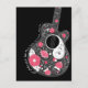 Awesome cool cute trendy girly swirls flowers leaves dots guitar, pink, white, grey, black colours. "If music be the food of Love, play on..." quote waving along the guitar, white colour letters. Image print.