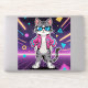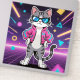 A stylish cartoon cat strikes a confident pose in a neon-lit, retro arcade world. Rocking a hot-pink bomber jacket and cool blue shades, this feline is the embodiment of 80s nostalgia and futuristic flair. With pixel shapes and neon beams glowing in the background, the cat radiates pure confidence and playful swagger.