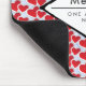 Mousepad with a repeating pattern with 2 red hearts with a white border joined together. A diamond shaped frame layered over top with your text inside. Personalised with a name and text which says: One Awesome Nurse.