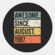 Awesome Since August 1987 Birthday Retro Classic Round Sticker