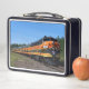This is a standard metal lunchbox that appears to work just fine. We designed this box ourselves with an uploaded photo and custom text on the front and back. It looks absolutely beautiful except the front of the lunchbox is not centered like it shows in the photo. The print borders don't align with the inset flat part of the box where the preview photo online showed it perfectly centered in there. The back looks nice and centered though.