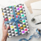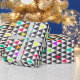 Awesome trendy retro geometric triangle pattern, grey, pink, blue, yellow, orange, green, white, bright vivid neon colours. Art, abstract, shapes, modern, décor, creative, illustration, tribal, artwork, style, design, Fashionable, strength, trend, whimsical, unique, artistic, cute, pretty, popular, modern, dreamy, spiritual, fresh, glamourous, beautiful, cool, sweet image. Personalise it with your name favourite word or phrase by clicking the customise button and add text, choose the text font and colour. Image print