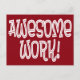 Awesome Work employee appreciation thank you card with large letters in a fun font. Change the background color if you like. Recognize your employees for their good work with a special thanks from management to staff or teacher to student.