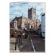 Looking up to the Church of St. John the Baptist, Axbridge, Somerset, from the Mediaeval Square. The two mediaeval Church Wells are visible on the left.